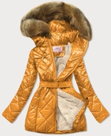 Damska parka zimowa na misiu pomarańczowa / brąz (w560)