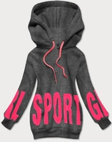 Bluza dresowa damska z nadrukiem ciemnoszara (26012)