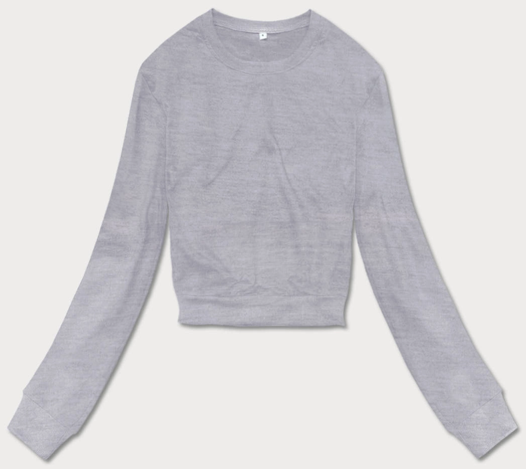 Cienka krótka bluza dresowa damska jasnoszara (8B938-2)