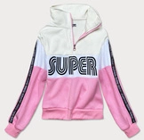 Bluza sportowa damska z rozpinaną stójką różowo-szara (26019)