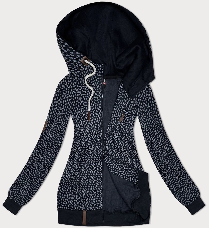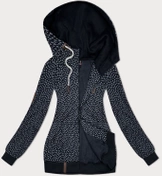 Rozpinana bluza z kapturem w drobne serduszka ciemny granat (2316)