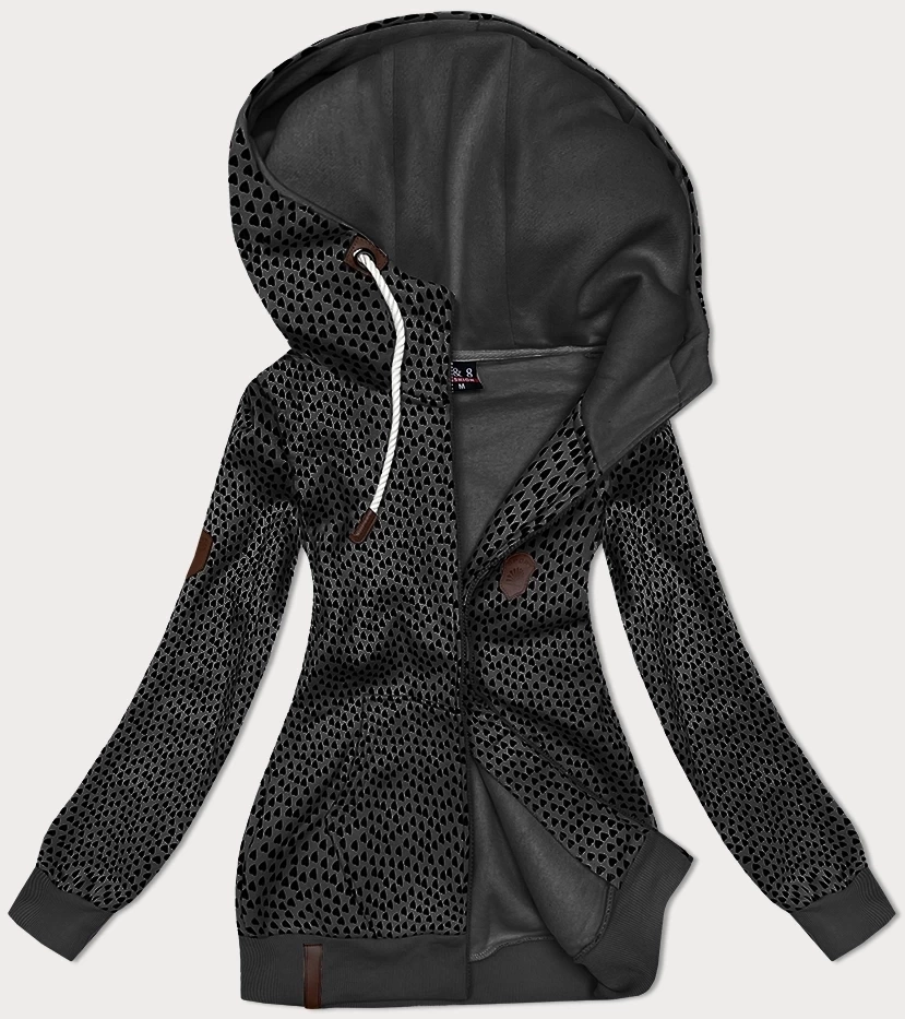 Rozpinana bluza z kapturem w drobne serduszka grafitowa (2316)