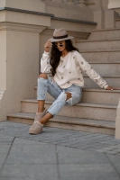 Bluzka damska z dekoltem w łódkę latte (82139B)