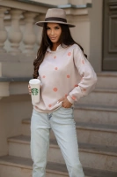 Bawełniana damska bluza w kropki beżowa (784)