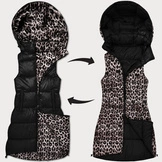 Gruba kamizelka dwustronna z odpinanym kapturem czekolada-panterka (T5-2602#-103)