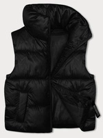 Krótki bezrękawnik damski ze stójką czarny (B8245-1)