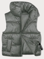 Krótki bezrękawnik damski ze stójką szarozielony (B8245-70)