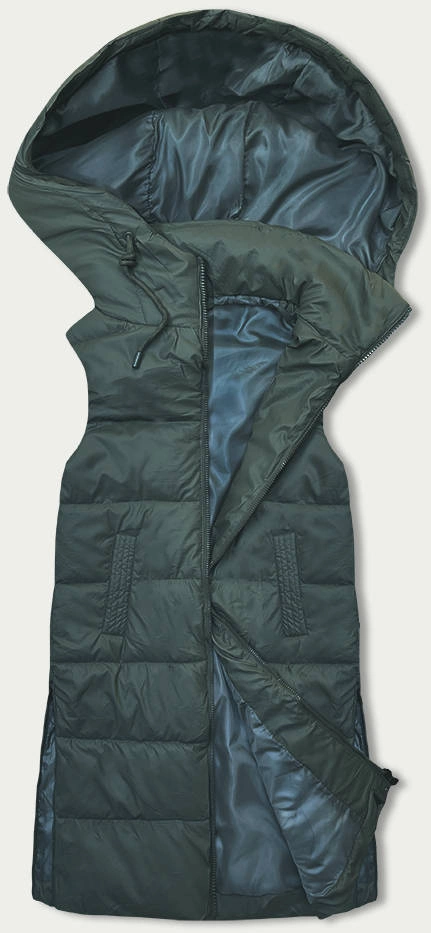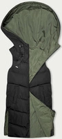 Długa kamizelka damska dwustronna czarna-khaki (B8159-1)