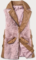 Elegancka kamizelka ekoskóra i futro karmel-róż (br9592-51022)