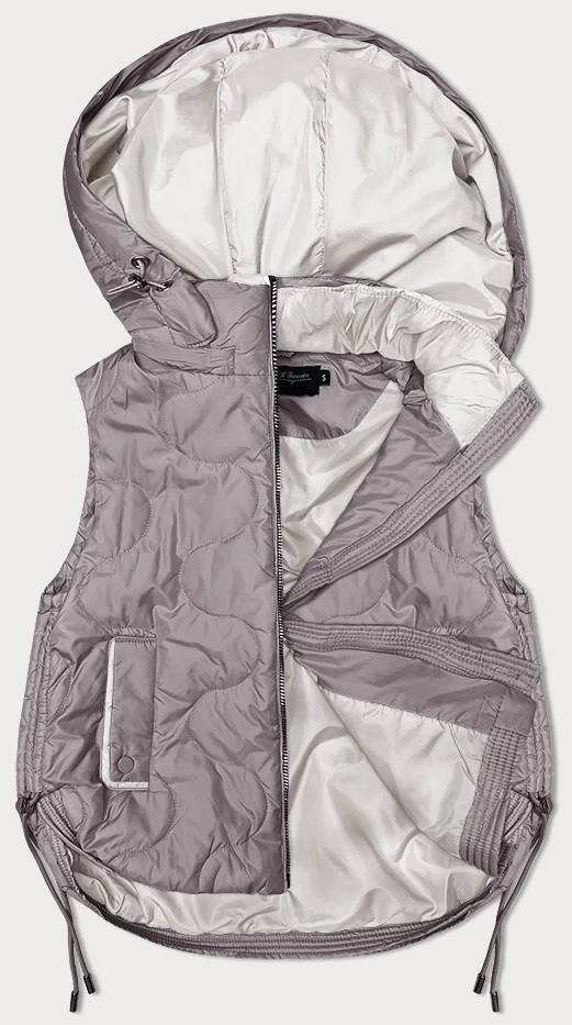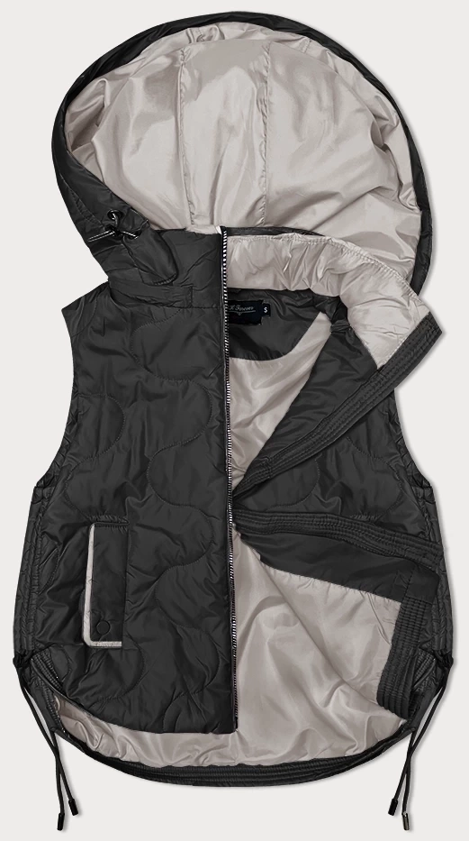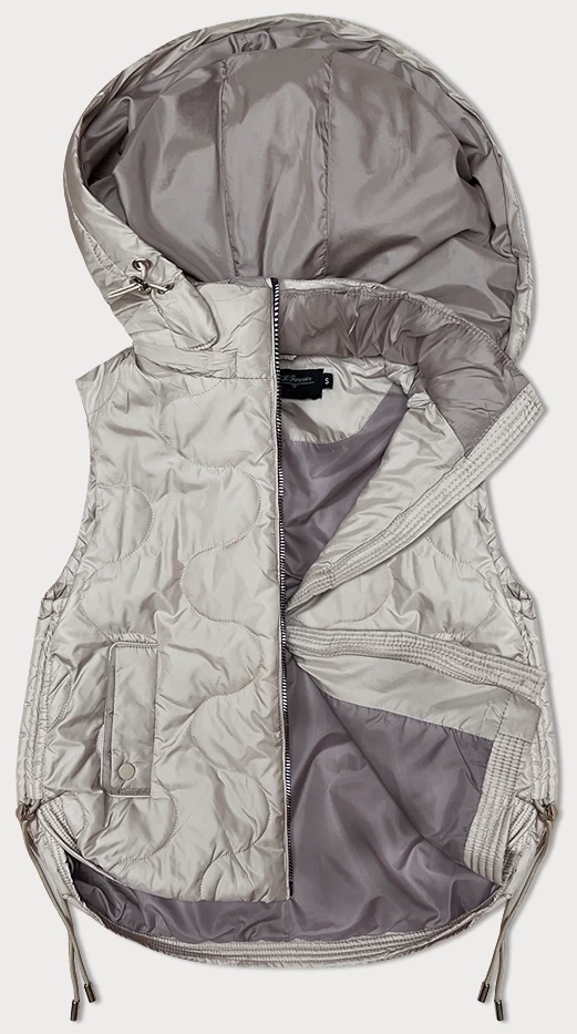 Bezrękawnik damski ze stójką i kapturem Miss Titi ciemny beż (3132)