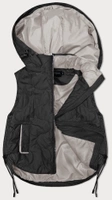Krótka kamizelka damska z kapturem j.style ciemny beż-czarny (16M9112-84)