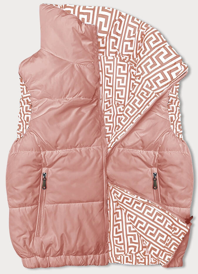 Krótki puchowy bezrękawnik damski ze stójką różowy (16M9092-51)