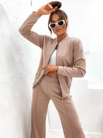 Komplet damski szerokie spodnie i bluza bomberka ciemnobeżowy (82105)
