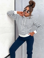 Bawełniany dres damski z bluzą w paski granatowy (82173)