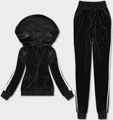 Welurowy komplet dresowy z lampasami czarny (YP-9964)