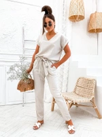 Dzianinowy komplet 2-częściowy bluzka i spodnie beżowy (VE74)