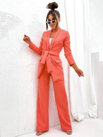 Komplet luźna marynarka + szerokie spodnie koralowy (8167)