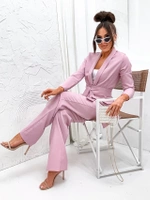 Komplet luźna marynarka + szerokie spodnie pudrowy róż (8167)