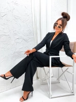 Komplet luźna marynarka + szerokie spodnie czarny (8167)
