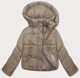 Krótka zimowa kurtka damska z dresowym kapturem J Style ciemny beż (16M9187-158)