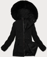 Damska kurtka zimowa z ozdobnymi paskami czarna (23MY-208)
