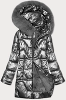 Damska kurtka z odpinanym kapturem szara (B8086-70)