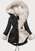 Zimowa dwustronna kurtka damska z kapturem czarny-beż (B8203-1046)