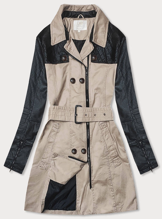 Damski płaszcz z łączonych materiałów beżowy (M206)