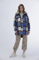 Damska kurtka koszulowa w kratę niebieska (AG3-1813)