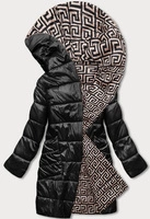 Kopertowa kurtka damska z kapturem czarno-beżowa (R8040)