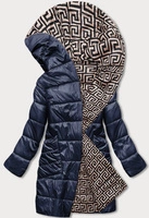 Kopertowa kurtka damska z kapturem granatowo-beżowa (R8040)