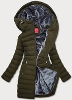 Zimowa kurtka damska do kolan oliwkowa (m-21601)