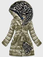 Długa zimowa kurtka damska z kontrastową podszewką zielona (j9-063)