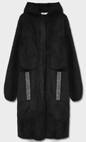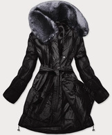 Damski zimowy płaszcz z futrem czarny (008)
