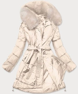 Damski zimowy płaszcz z futrem beżowy (008)