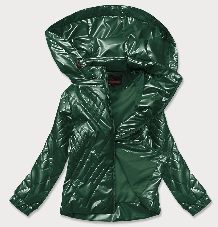 Błyszcząca damska kurtka pikowana zielona (b9573)
