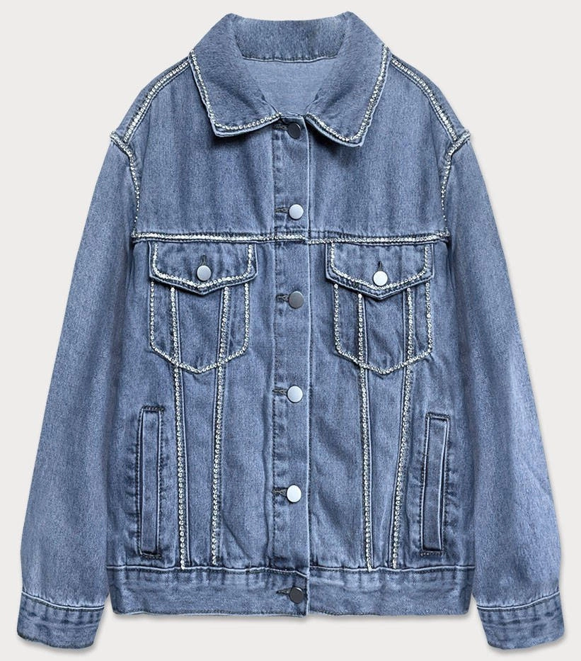 Jeansowa kurtka damska denim cyrkonie niebieska (t2861)