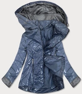 Błyszcząca damska kurtka z kapturem srebrna (b9569)