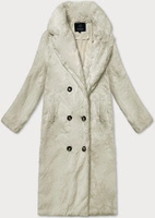 Płaszcz futerko damskie z kołnierzem ecru (WD2332)