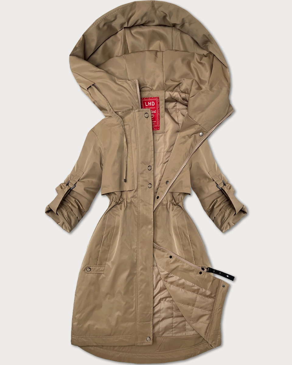 Lekko ocieplana kurtka damska z kapturem LHD jasny beżowy (LHD-24589)