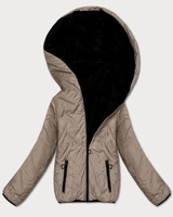 Zimowa dwustronna kurtka damska z kapturem beż-czarny (B8203-1201)