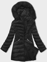 Damska kurtka z ozdobnym kapturem czarna (B8215-1)
