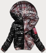 Taliowana kurtka damska z łączonych materiałów czarna (752art)