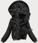 Krótka kurtka damska z ozdobnym wykończeniem czarna (b8030-1)