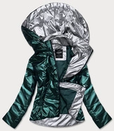 Oversizowa pikowana kurtka damska z kapturem miętowa (ag5-010)