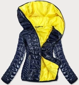 Błyszcząca damska kurtka pikowana granatowa (b9573)