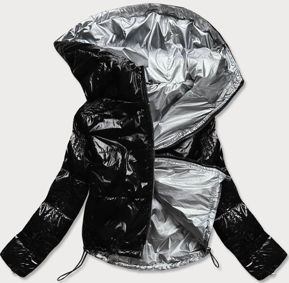 Krótka pikowana kurtka damska z kapturem czarna (can-333)
