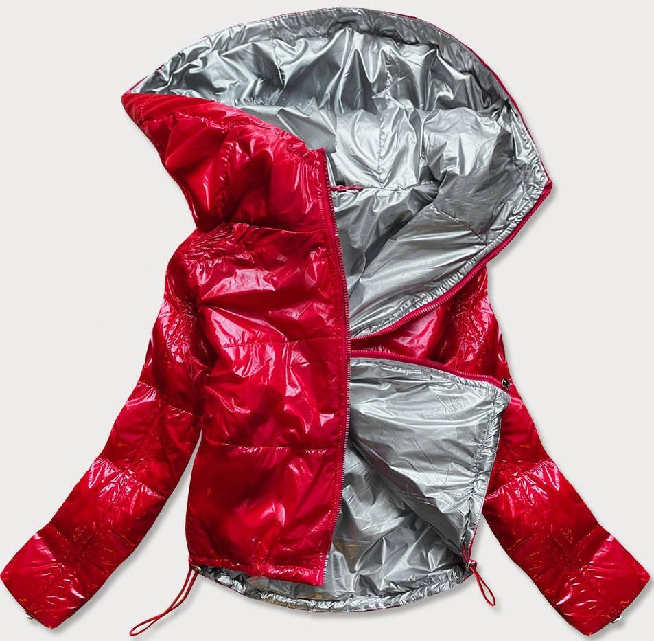 Krótka pikowana kurtka damska z kapturem czerwona (can-333)