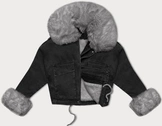Krótka damska kurtka jeansowa na futrzanej podszewce J Style wytarty czarny/szary (11Z8219)
