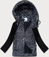 Pikowana kurtka z odpinanym kapturem Miss TiTi czarna (2482)